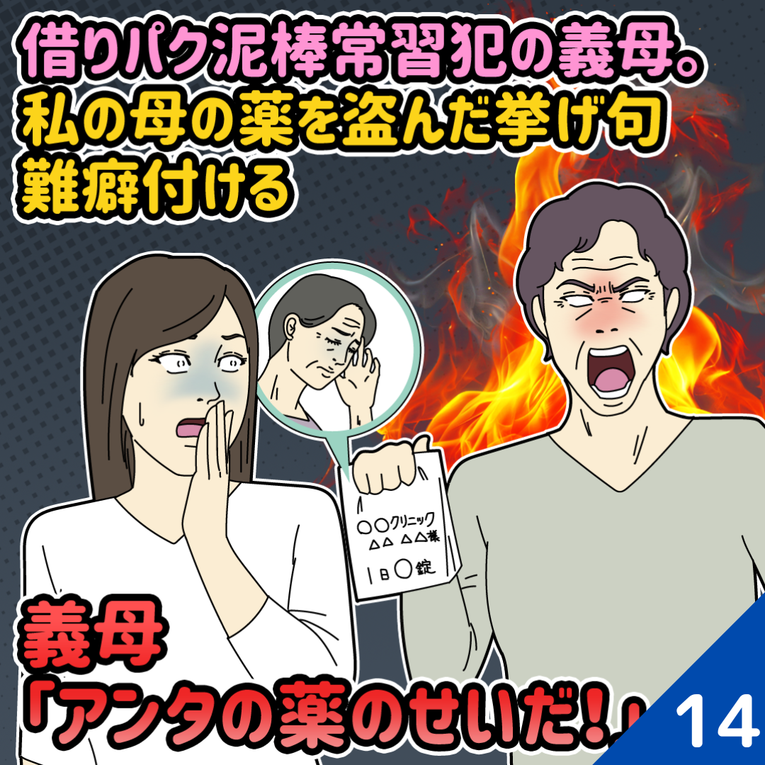 【第14話】借りパク泥棒常習犯の義母。私の母の薬を盗んだ挙げ句難癖付ける→義母「アンタの薬のせいだ!」